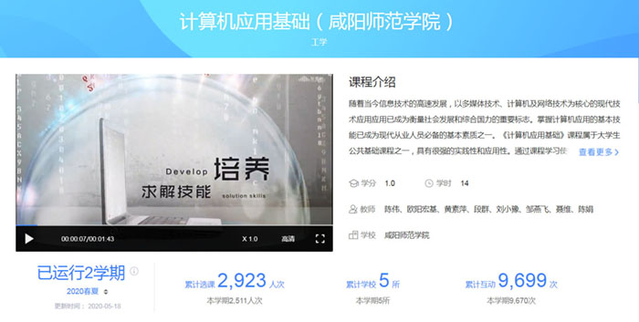 一门是陈伟老师团队建设的公共课《计算机应用基础》,该资源已经被5所院校选择使用。资源网址是:https://coursehome.zhihuishu.com/courseHome/2046718#teachTeam.