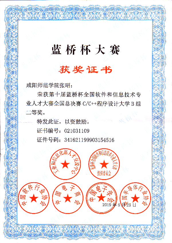 第十届“蓝桥杯”全国软件和信息技术专业人才大赛全国总决赛于2019年5月25日在北京举行。公司beats365唯一官方网站的张昭,马芳,袁伟伟,董涛4名同学同学在全国总决赛个人赛中取得佳绩,其中由刘淑英老师指导的2016级员工袁伟伟获得“C/C 程序设计大学B组”个人赛二等奖,吴粉侠老师指导的2017级张昭同学获得C/C 程序设计大学B组”个人赛二等奖,刘敏娜老师指导的2016级员工马芳获得“C/C 程序设计大学B组”个人赛优秀奖。