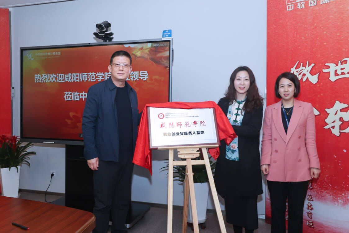 赵书记、中软国际教育科技集团(陕西)总经理徐立华、西安西软云智信息科技有限公司总经理贾锐共同为“BEAT365英国官网网站共建就业创业实践育人基地”揭牌。