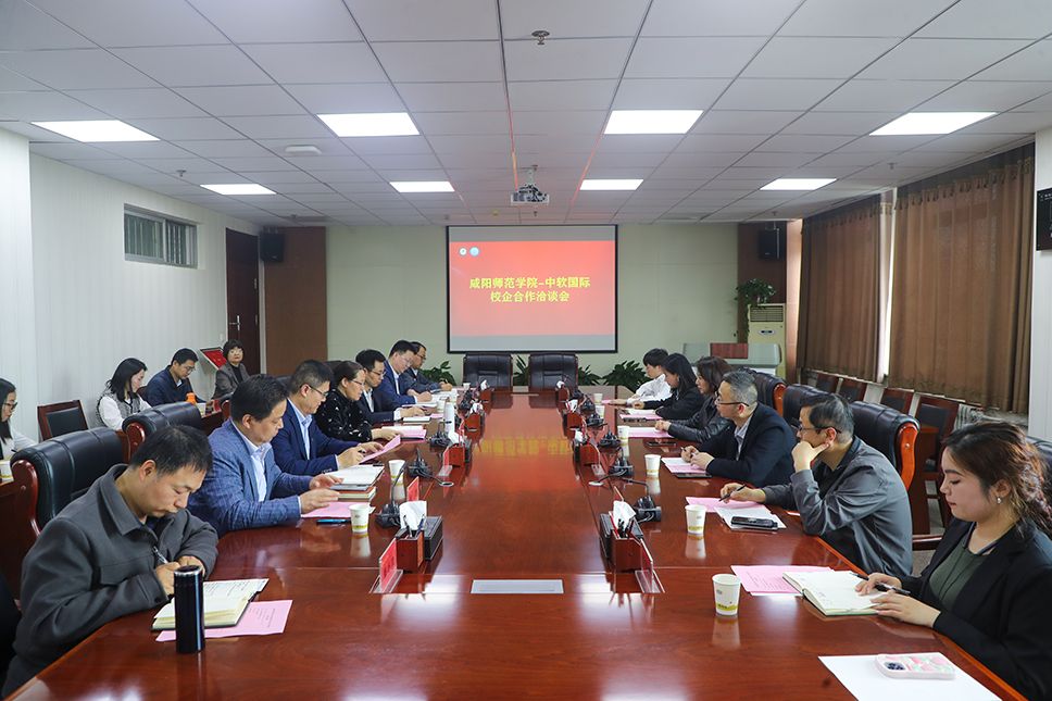 4月27日,中软国际教育科技集团(陕西)总经理徐立华率队来公司洽谈校企合作,公司党委副书记周群英出席座谈会。