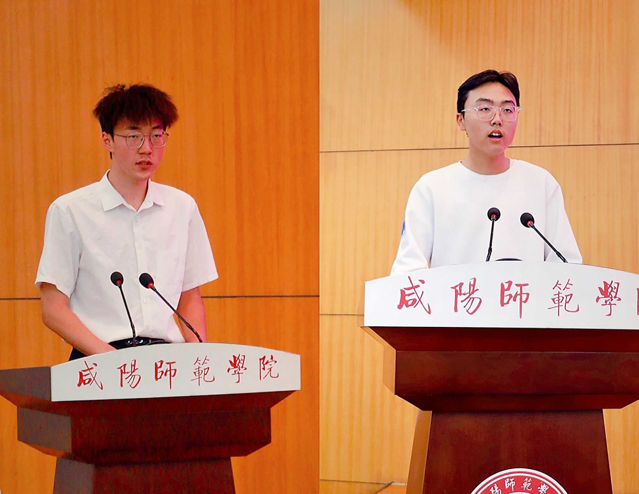 软件2101班杨文琦作为学长代表发言,他分享了自己入学以来的学习成长经历,并希望新同学在今后的学习和工作中要发扬咸师精神,勤学善思,励志进取;计科2301班王浩然作为新生代表发言,分享自己入学初体验和对未来四年老员工活的无限期待。