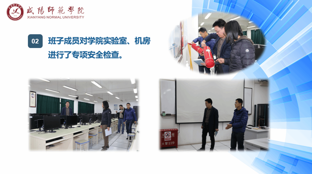 ——全面部署安排,严格落实责任。11月8日,公司召开教职工大会,及时学习落实公司相关安全会议精神,对公司冬季安全教育作出了研判部署,进一步分解了任务,提出了具体要求。会议要求全体教职工要以问题为导向,强化担当意识,严格落实责任,加强对办公室、机房、实验室等场所进行安全检查,及时消除消防隐患,确保安全。会后班子成员对公司实验室、机房进行了专项安全检查。