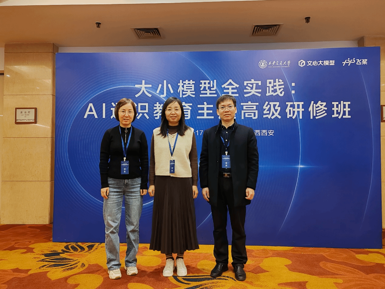 2024年11月16日至17日,beats365唯一官方网站副经理韩改宁和教师代表吴宗胜、段群老师一行3人参加了由西安交通大学主办的“大小模型全实践:AI通识教育主题高级研修班”。