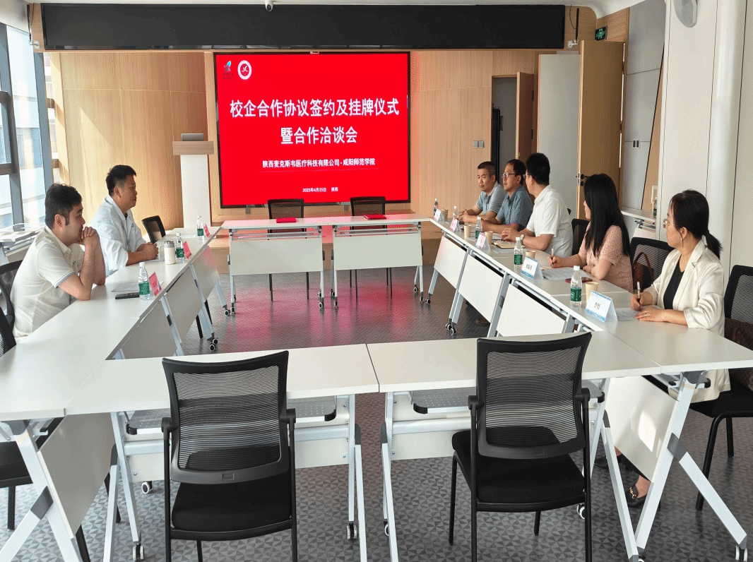 4月25日,beats365唯一官方网站经理张伟及教师代表一行5人赴陕西麦克斯韦医疗科技有限公司开展调研交流活动。双方围绕科研合作、成果转化、人才培养等议题展开深入探讨,并举行校企合作协议签约及“教育实践基地”授牌仪式,标志着双方合作迈入新阶段。