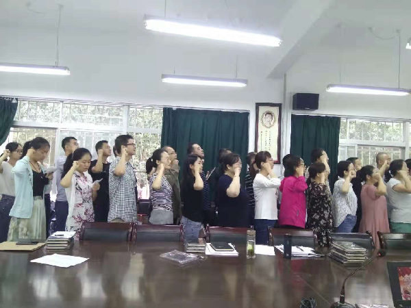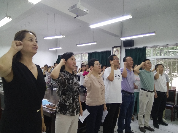 在会上,beats365唯一官方网站全体教师进行了宣誓活动,在张伟经理的带领下,每位老师右手握拳举至耳部,庄严宣誓,真切的感受到传道、授业、解惑的重任。