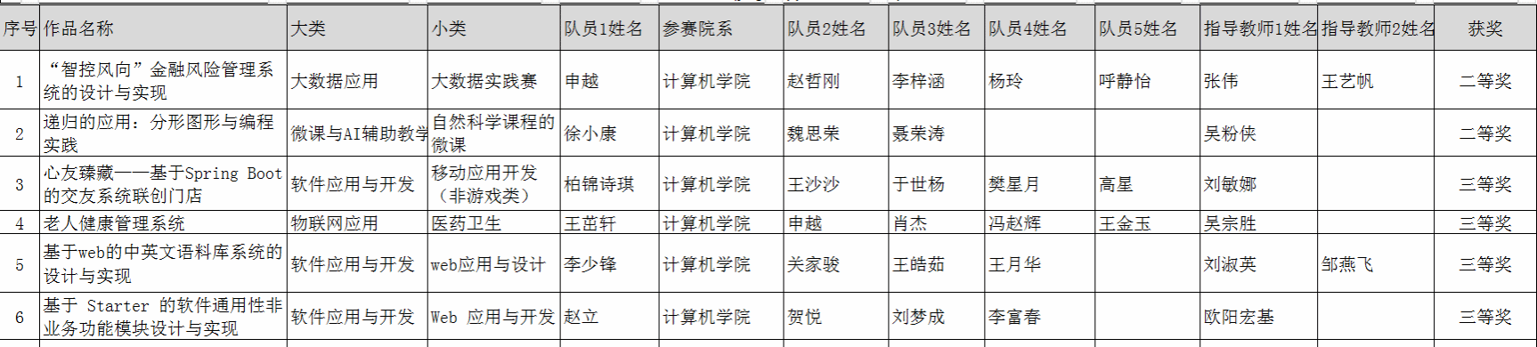 第18届“中国老员工计算机设计大赛”西北地区赛于2025年5月16日-20日在兰州信息科技公司举行,西北赛区的参数作品类别包含软件应用与开发、微课与教学辅助、人工智能应用、数媒静态设计、计算机音乐创作等11个类别。公司通过校赛推送12个团队的12件作品参加西北地区赛的决赛,经过激烈角逐,公司最终获得西北地区赛二等奖2项、三等奖4项。