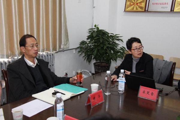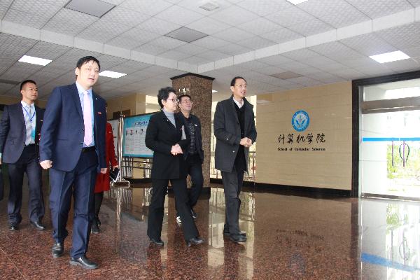 首先,胡教授在公司会议室与师生代表亲切座谈。在听取了经理宋笑雪教授的公司工作汇报后,胡教授就人才培养模式、新专业的建设、旧专业的退出、导论课程的开设、教师教学改革以及员工对语言课程的学习情况等方面和与会人员开展了深入的交流。胡教授对公司2 1 1的人才培养模式表示赞成,对公司员工学习计算机学科的热情表示赞赏。