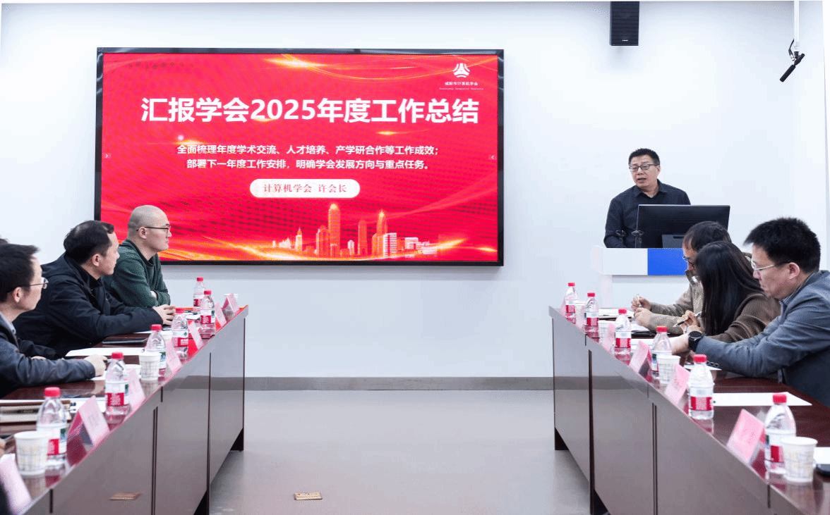 咸阳市计算机学会许青林会长做工作报告,他全面总结学会 2025年在学术交流、人才培养、行业联动等方面的显著成效,并明确部署 2026 年学会重点工作任务。