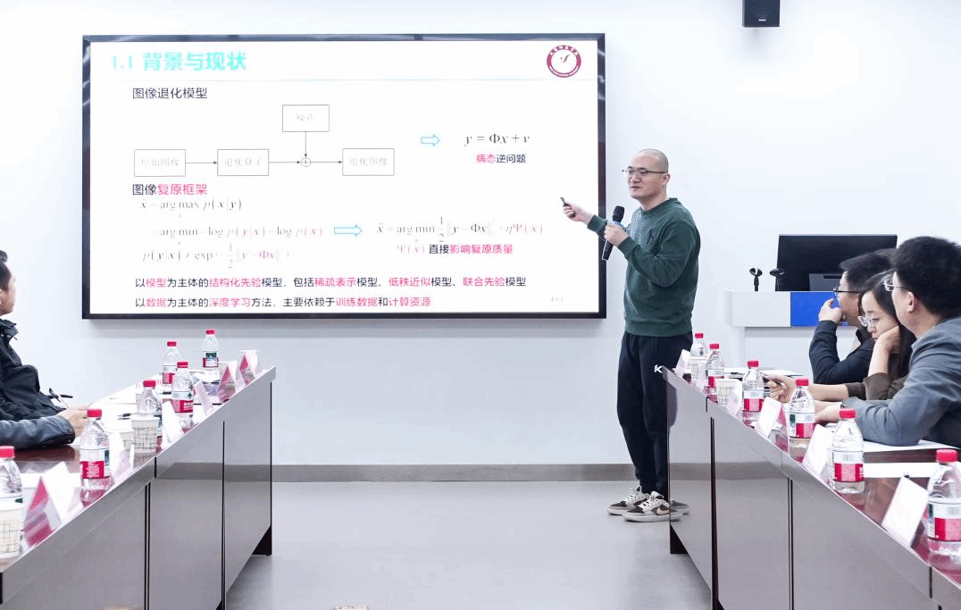 下半场学术报告中,best365英国在线体育官网袁伟博士做了《结构化模型图像复原和大语言模型基础》主题报告,他详细解读了结构化模型图像复原的核心技术,同时通过机器翻译案例介绍了大语言模型的自注意力机制以及Transformer核心框架。