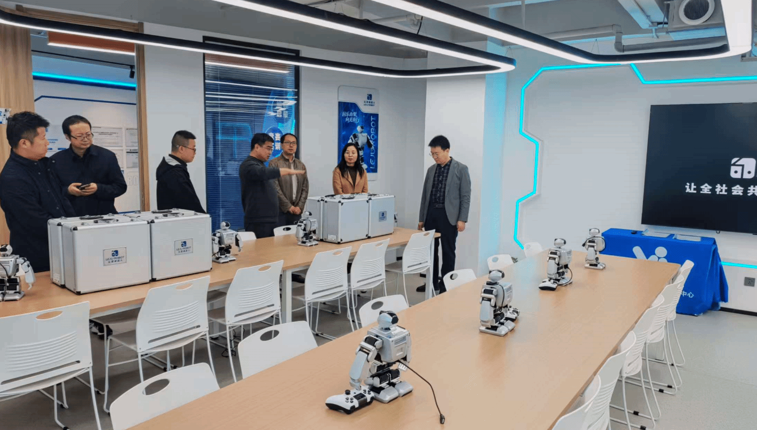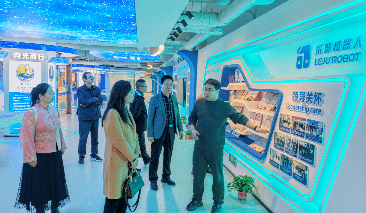 在未央区机器人产业创新中心,调研团队首先实地参观了西安市人工智能学习体验中心,该中心依托乐聚机器人顶尖的软硬件技术和成熟的AI、创客教育实践体系打造而成,设有Pando 编程机器人实验室、智慧工业机械臂实践实验室、开源鸿蒙万物智联实验室等六大主题实验室,构建起覆盖机器人编程、智能算法、工业应用等多领域的实践教学场景。参观过程中,团队成员详细了解了中心的课程教学体系、产业级实训设备及校企合作育人模式,对中心将前沿技术与实践教学深度融合的创新做法给予高度评价,也为公司后续实践教学体系优化积累了宝贵经验。