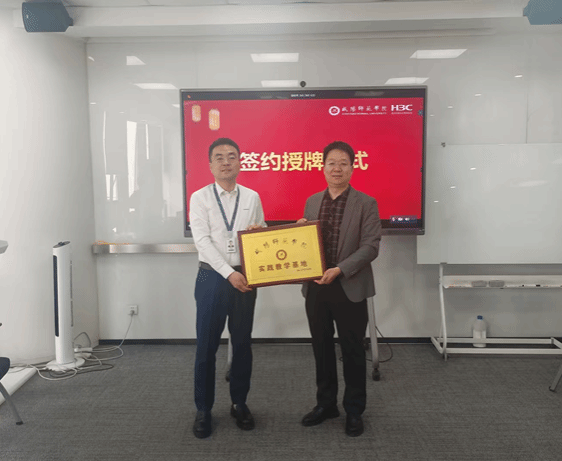 张伟经理为新华三陕西代表处授予“实践教学基地”牌匾