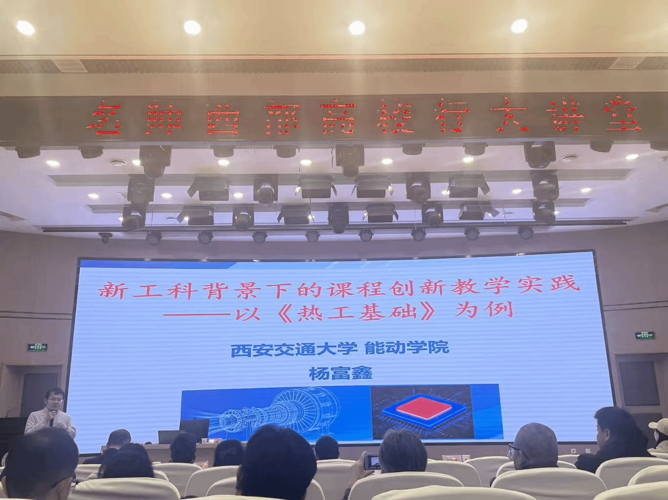 报告会上,徐亮教授以《数智化背景下基于知识图谱和人工智能重构课程的教学创新与初步实践》为题,结合国家级一流本科课程的建设实践,系统阐述了数智化教学改革的核心路径。杨富鑫教授以《新工科背景下的课程创新教学实践 —— 以〈热工基础〉为例》为题,结合陕西省本科高校教师教学创新大赛备赛经验,从课程创新与赛事筹备两方面进行分享。
