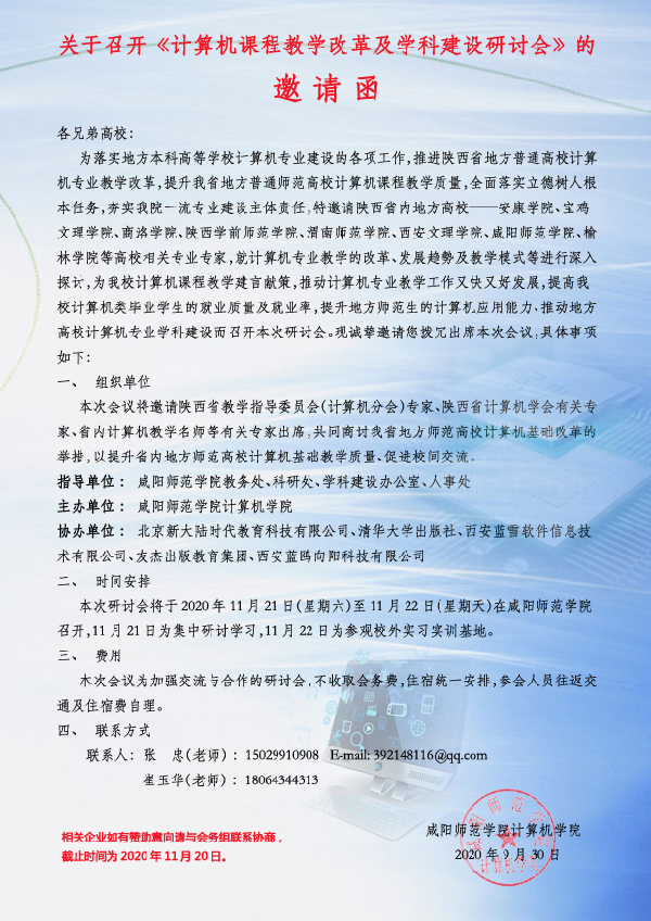 关于召开《计算机课程教学改革及团队建设研讨会》的研讨会