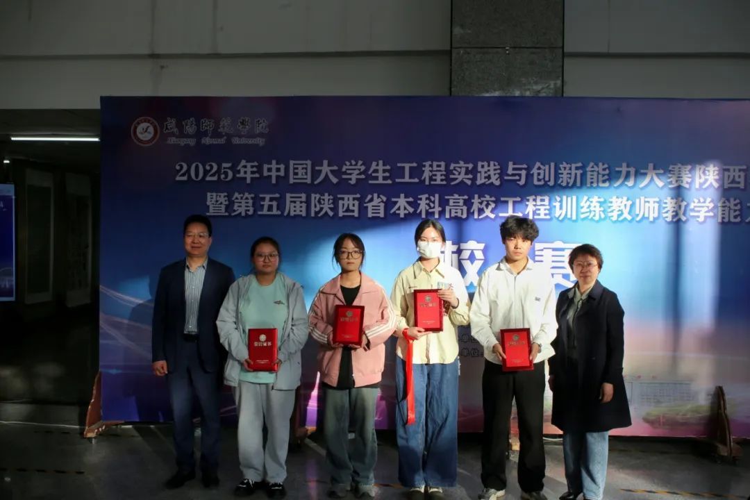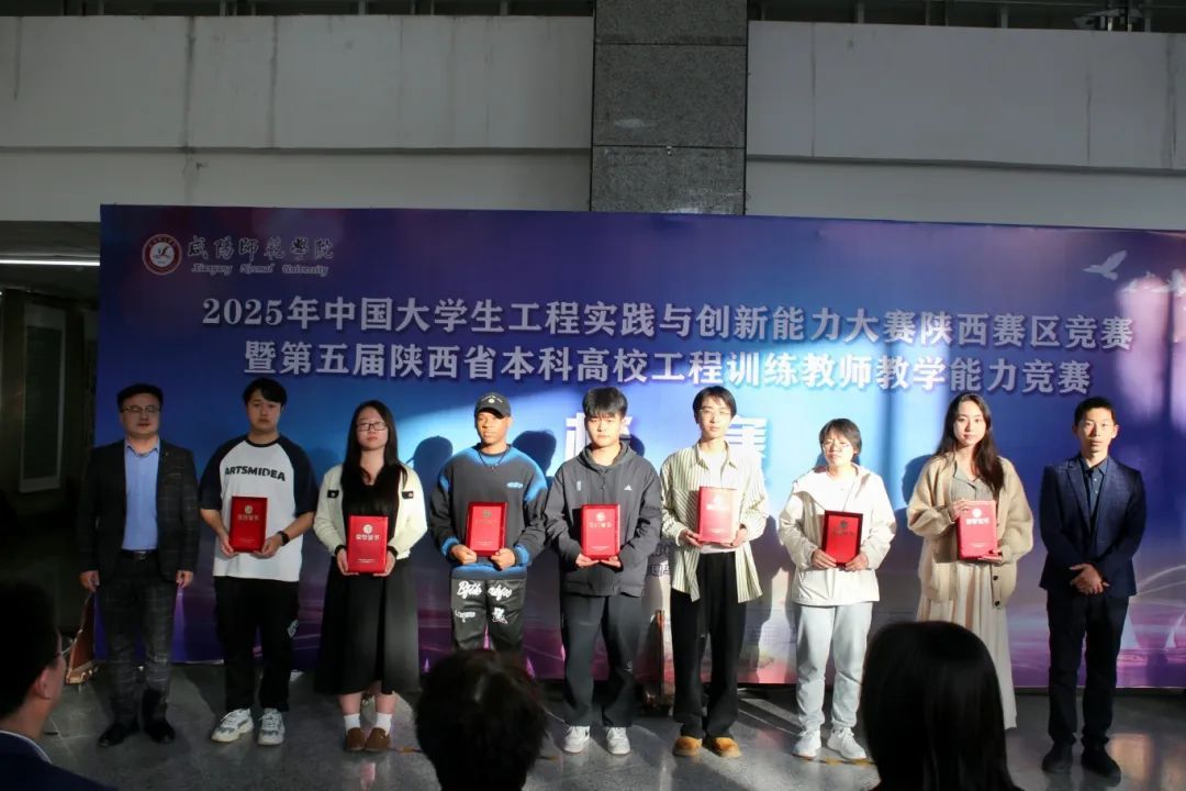 企业代表樊斌、beats365唯一官方网站书记王革慧、beats365唯一官方网站经理张伟、物理与电子工程公司副书记袁月、物理与电子工程公司经理何东山、副经理陈博等嘉宾为获奖团队颁发证书,并合影留念。
